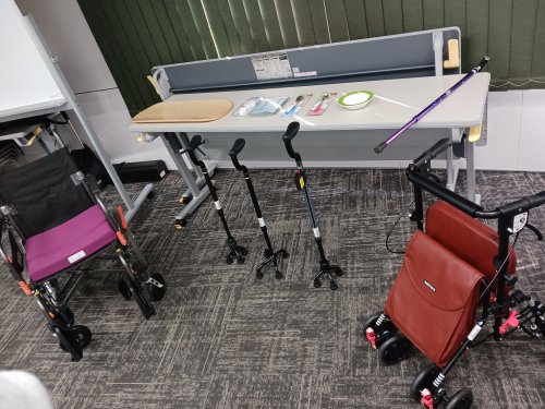 講義の後は実際にフロンティアさんが持ってこられた福祉用具を