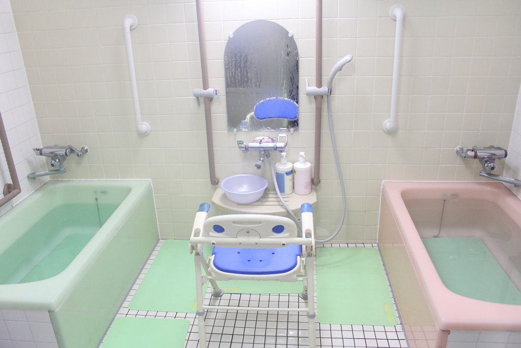 浴室「ときわ湯」:お身体の状態に合わせ左右どちらかの浴槽を使用します。
