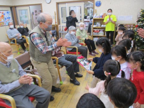 その後は、クリスマスの定番ソングである『ジングルベル』と『赤鼻のトナカイ』を一緒に歌い、ハイタッチをしてお見送りをさせていただきました。