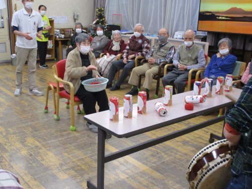 クリスマスピン倒しでは、「えい!」と勢いよく玉を投げるご様子が見られ、まるで雪合戦をしているかのようでした。