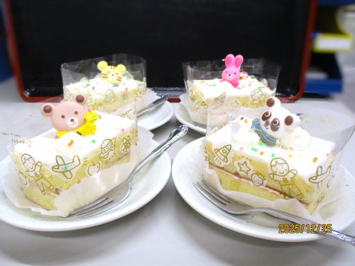 体を動かした後、15時からはシャトレーゼのケーキを提供しました。
