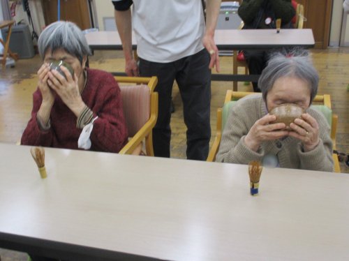 凍てつく寒さの昨今ですが、1月の松ノ木ふれあいの家は、新年の訪れとともに温かいお抹茶を楽しむ時間がございました。