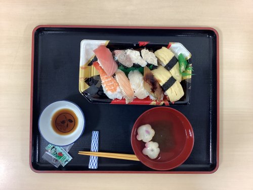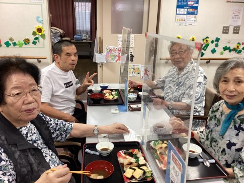 お食事は敬老のお祝いとして「お寿司」をご用意し、皆様「すごい豪華ね。