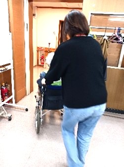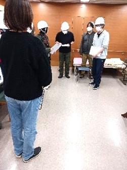 今回の訓練では、避難者のモデル役の方を井草中から上井草園まで実際に移送するということを行ってみました。車いすを押す際には、「曲がります」「動きます」等の声掛けがどれほど重要なのかということや、モデル役の方から「車いすに乗っていると、おしりが痛くなるから、座面に敷くクッションを用意しておくといいのでは」等のお声をいただきました。地域で連携することの大切さに改めて気づくことができました。(担当:中村紅葉)